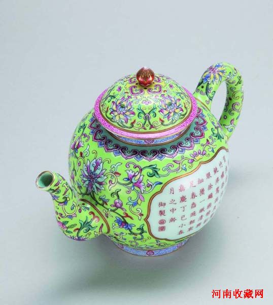 清 嘉庆 御制粉彩缠枝莲纹开光御题诗文壶