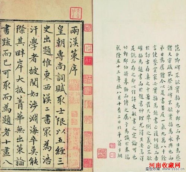 元抄本《两汉策要十二卷》为学术界、藏书界无不知晓的一部书,四百年来盛传为赵孟頫抄本。经明清名家递藏,明嘉靖间存周良金处,明末清初入毛氏汲古阁,清乾隆间为张朝乐所得,清末又为完颜景贤所藏。内有翁方纲、王杰、钱大昕、孙士毅、袁枚众人题跋,钤印累累,毛氏汲古阁前后所钤印鉴竟达八十余方,可知此书瑰重。《汲古阁珍藏本书目》、《书林清话》、《郘亭知见传本书目》、《藏园群书题记》、《春游琐谈》均有所载,世所罕见,文物价值之重,自不待言。书法艺术直敌赵文敏,四百年来赞誉如潮;五百年来名家递藏流传有序,不入寻常人家;翻刻影印化身千百,学者、鉴赏家、收藏家莫不慕名知晓,享誉于世。完颜逝后此书散出,多年流转而难觅其踪,此番现身,受到众多藏家热烈追捧。