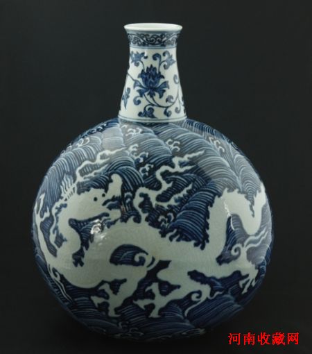 明宣德青花海水白龙纹扁瓶