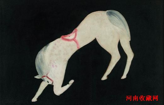 常玉一生创作油画200多幅,描绘动物的比较少,画马的更少。对于常玉而言,马就是女人,常玉也一直昵称她妻子玛素为Ma。纵观常玉全集所载画马作品,此幅为公认体态最为婀娜优美,驯从动人。马鬃似女人的毛发,马鞍如腰带,马身上粉红的斑点,如同女子衣裙。单膝跪地的姿态,博人怜爱,带出了常玉内心深处对女人的渴望与想象。