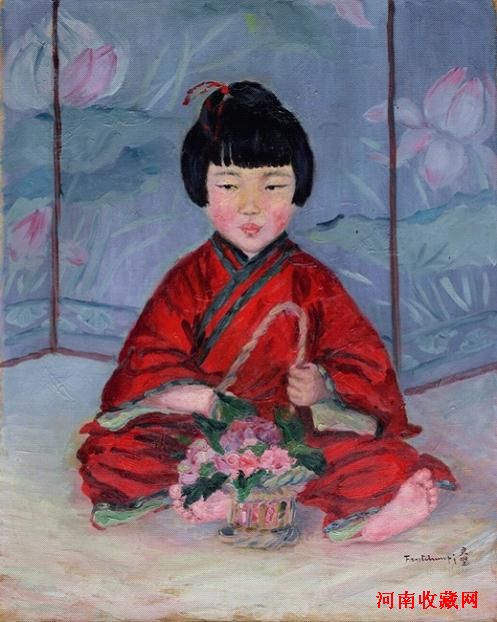 更为难得的是,《恂恂》和《桃衣少女》都有多次出版。《恂恂》出版于中华书局1932年版《方君璧画集》。中华书局民国21年(1932)为两位画家出版了个人画集,一位是徐悲鸿,另一位就是方君璧。1928年7月号《Reveu du Beau et du Vrai》杂志刊登此画并作评语如下:今年方女士在美术展览会所列之画,为一引人注意之儿童肖像。在一荷花历乱浮于水面之漆“屏风前,一女孩坐于席上。衣光彩夺目之衣,手提花篮,短发如漆,上环小髻,使横斜之双目,秀美之面色,意为显然女孩静坐,神态天真而安详,似牙刻之古代神像,而在此像前,置一虔心信女所献之花香并芬之祭品”。
