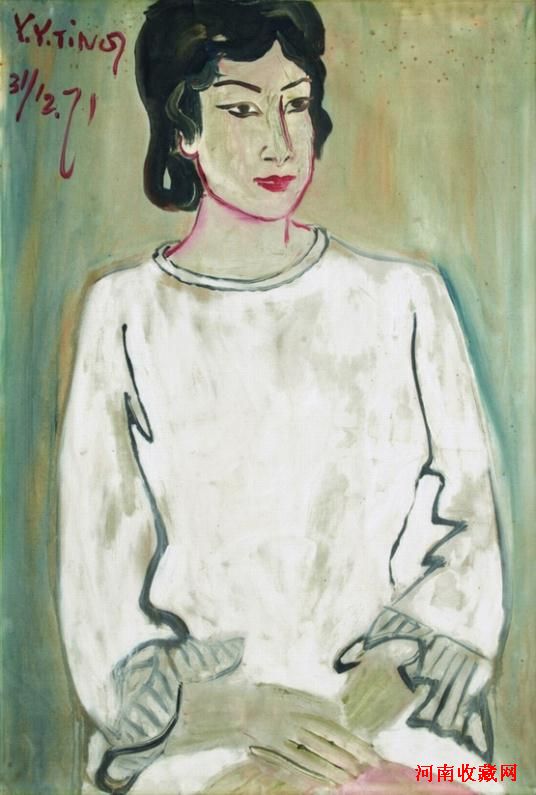 诚轩刚刚以一幅丁衍庸1971年作《仕女与马》创下414万的成交纪录。此番亮相匡时春拍的《孟霞女士肖像》(1971年作,89×60cm,估价50万至80万)与上述作品同一尺幅,创作于同一年,同一模特。然匡时春拍之《孟霞女士肖像》更为特殊,此画创作于1971年的新年夜,是热烈中的冷静。大面积白色的运用类似留白但又层次丰富,肌理细致,可谓艺高人胆大。衣服类似平涂,而面部刻画则近于堆塑,熔八大山人的大写意与马蒂斯野兽派为一炉
