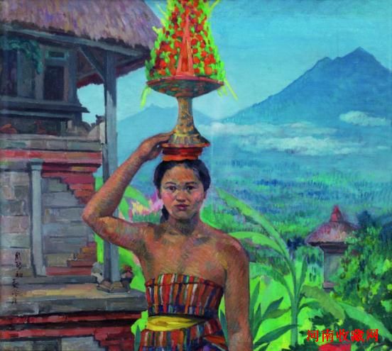 第一代油画家周碧初先生擅长风景,他的《峇厘少女》(1952年作,布面油画,64×72cm,估价38万至48万元)是周先生印尼时期最重要的创作,也是迄今为止拍卖中所见唯一一幅人物画。人物造型取自高更名作《塔希提少女》,而画法却是点彩派与印象派的结合。据家属告知,周碧初此画所费心力,逾平常作品十倍。