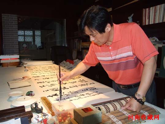 王鸣在创作书法作品